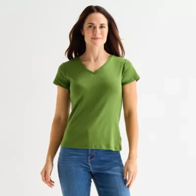 Liz Claiborne Womens V Neck Short Sleeve T-Shirt