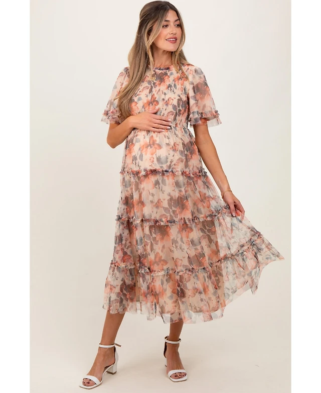 Pinkblush Maternity Smocked Mesh Ruffle Accent Midi Dress