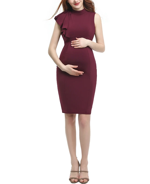 Women's Sleeveless Ruffle Shoulder Smocked Maxi Dress - Motherhood Maternity