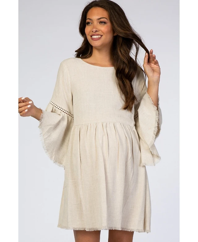 Pinkblush Maternity Beige Long Sleeve Fitted Dress