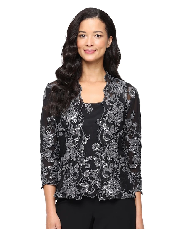 Alex Evenings Women's 3/4-Sleeve Velvet Blouse