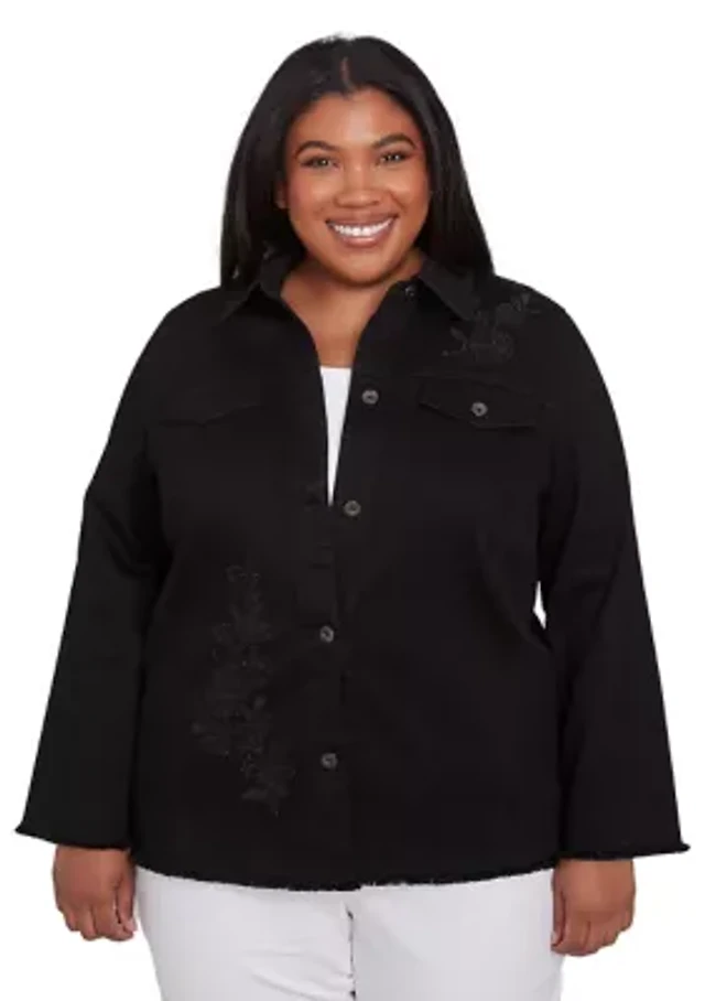 Alfred Dunner Plus Hilton Head Floral Applique Detail Light Denim Jacket