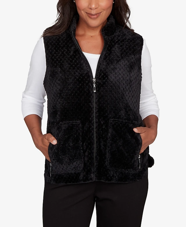 Alfred Dunner Plus Stockbridge Plush Zip Front Vest Jacket