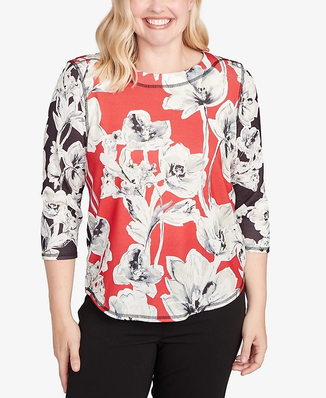 Alfred Dunner Women's Wild At Heart Dramatic Floral Crew Neck Top