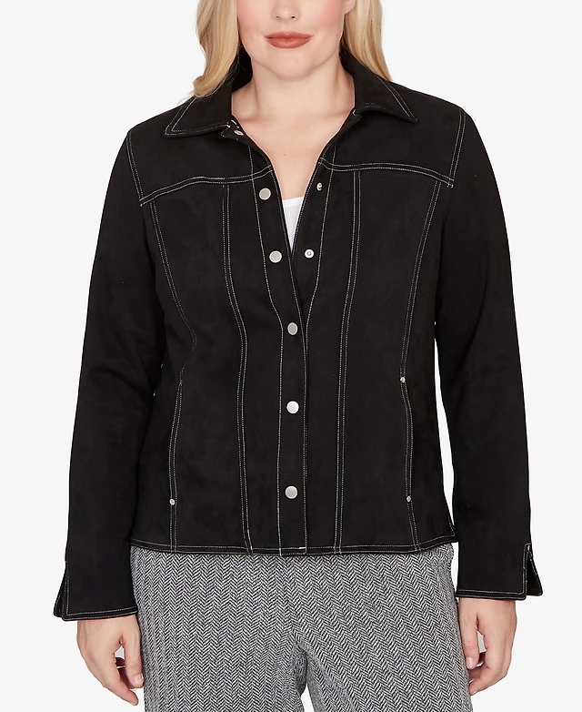 Alfred Dunner Women's Wild at Heart Geometric Multi Textured Patchwork Top