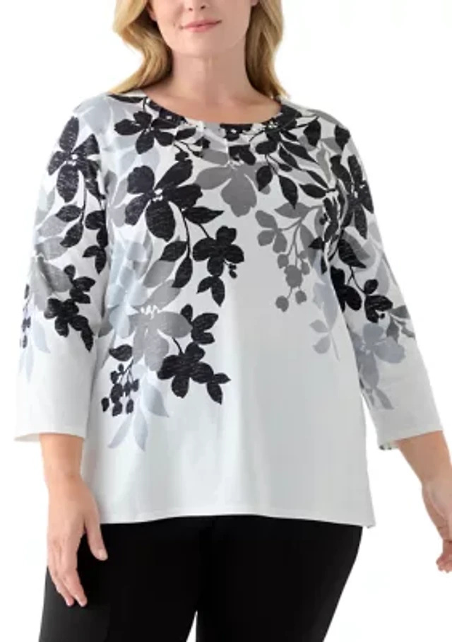 Alfred Dunner Women's Flower Power Floral Textured V-Neck Top