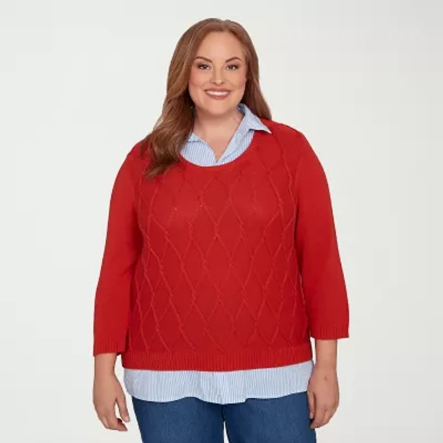 Alfred Dunner Plus Womens Crew Neck Long Sleeve Pullover Sweater