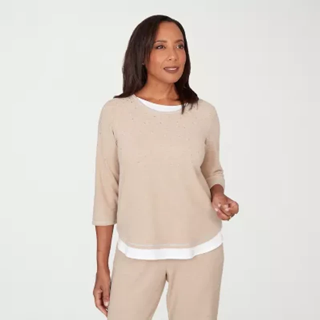 Alfred Dunner Business As Usual Womens Crew Neck 3/4 Sleeve T-Shirt