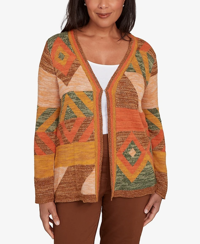 Alfred Dunner Women's Santa Fe Abstract Butterfly Button Front Top