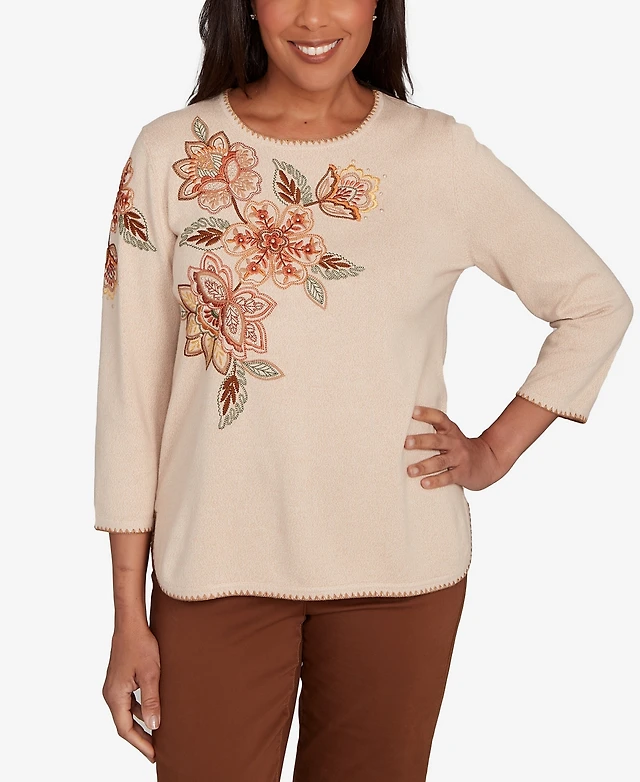 Alfred Dunner Women's Crystal Springs Embroidered Flower Crew Neck Top
