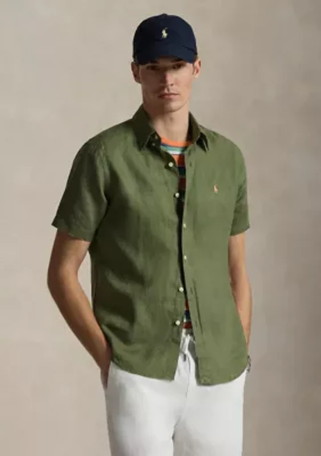 Textured Ticking Striped Cotton-Blend Short Sleeve Shirt