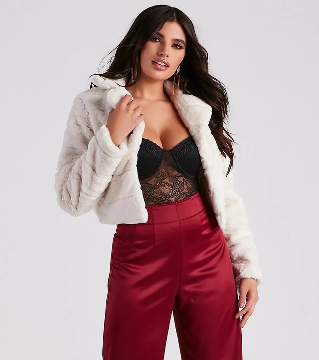Pop Diva Status Metallic Faux Fur Crop Jacket