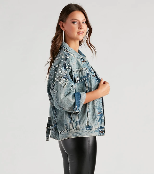 Perfect Pick Pearl And Rhinestone Denim Jacket