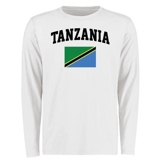 Men's White Tanzania Flag Long Sleeve T-Shirt
