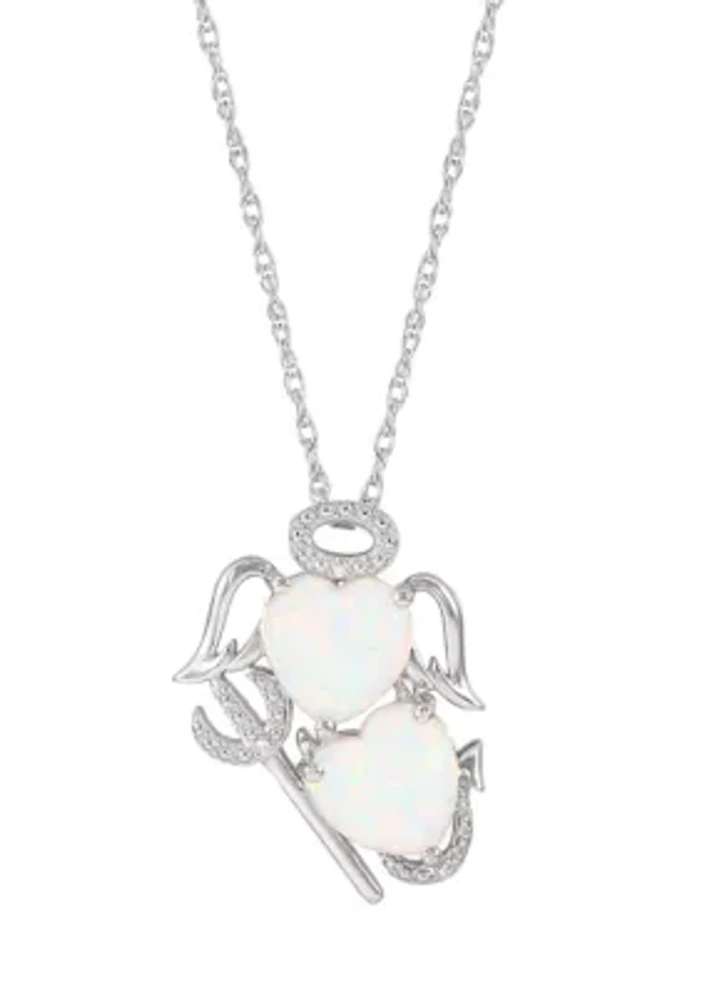 Lab Grown Diamond and Opal Angel and Evil Pendant with 18" Rope Chain in Sterling Silver