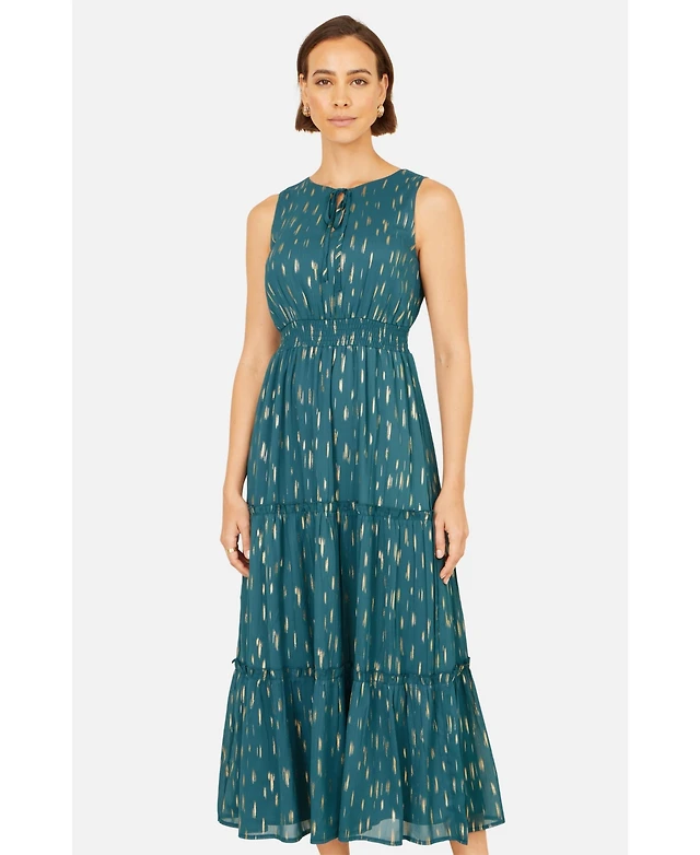 Sl Fashions Women's Tea Length Printed Lurex Midi Dress