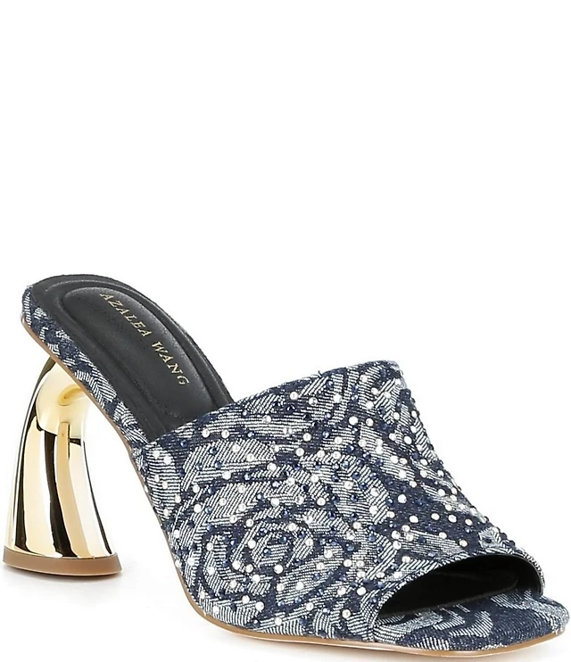 Azalea Wang Chryssa Denim Floral Rhinestone Dress Sandals