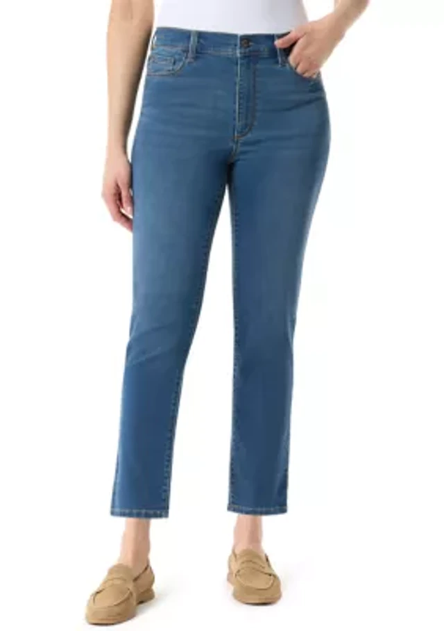 Ruby Rd. Petite Size Extra Stretch Denim Straight Leg Pull-On Ankle Jeans