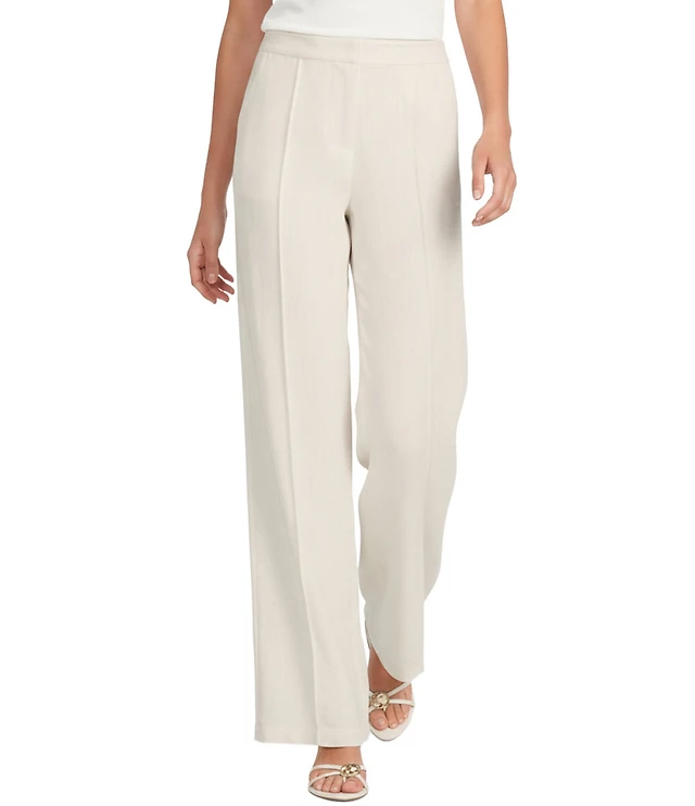 Linen Blend Dobby Wide Leg Pants