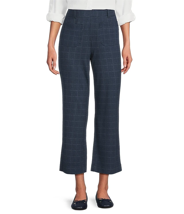 Investments Plus Blue/Black PARK AVE fit Elite Stretch Pull-On Wide Leg Crop Pants