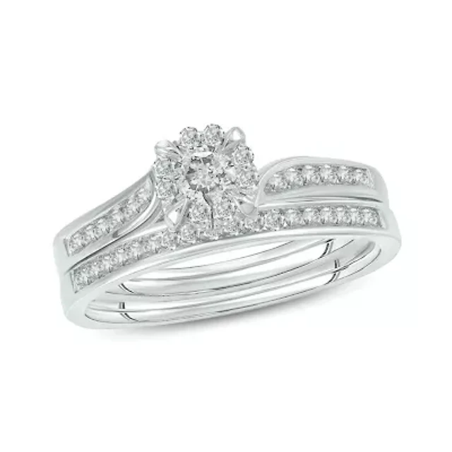 Signature By Modern Bride (H-I / Si2) Womens 2 CT. T.W. Lab Grown White Diamond 10K Gold Oval Side Stone Halo Engagement Ring