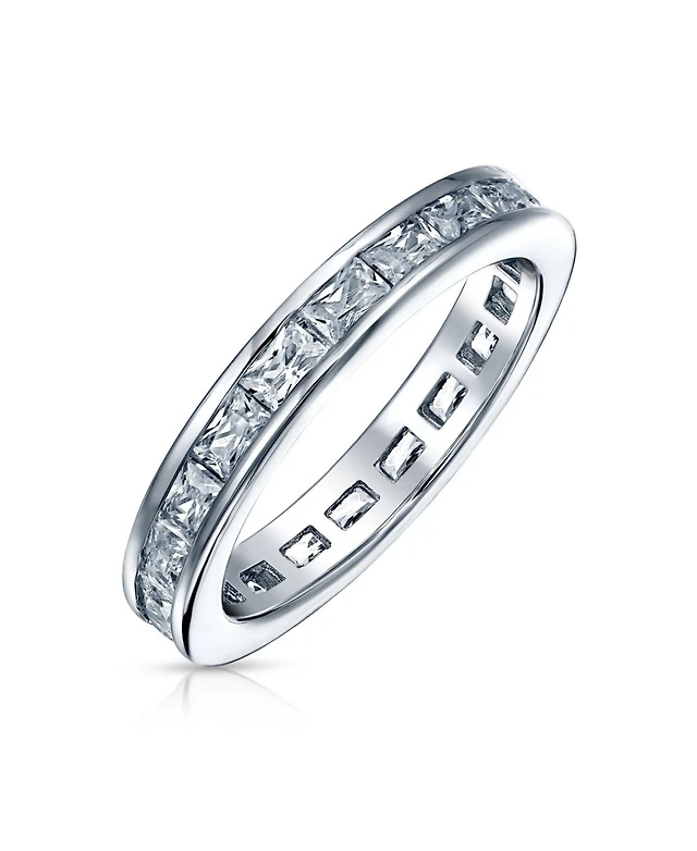 Bling Jewelry Cubic Zirconia Channel Set Rectangle Emerald Cut Baguette Cz Eternity Band Ring .925 Sterling Silver 4MM Stackable Rings