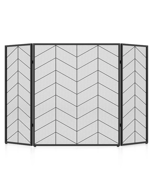 52 x 31 Inch Fireplace Screen with Chevron Herringbone Pattern