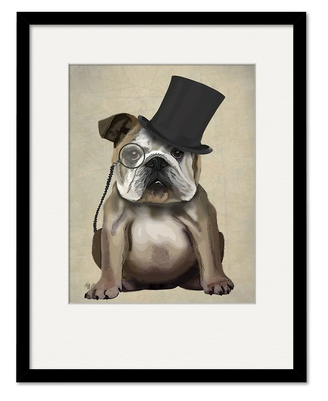 Courtside Market English Bulldog, Formal Hound and Hat 16" x 20" Framed and Matted Art