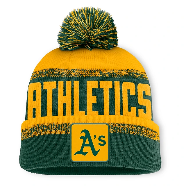 Men's New Era Green Oakland Athletics Striped Cuffed Knit Hat with Pom