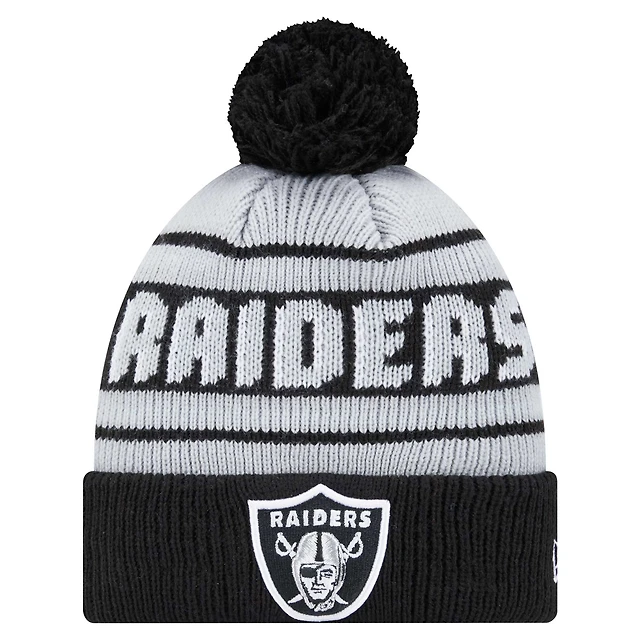 Youth New Era Black Las Vegas Raiders Main Cuffed Knit Hat with Pom