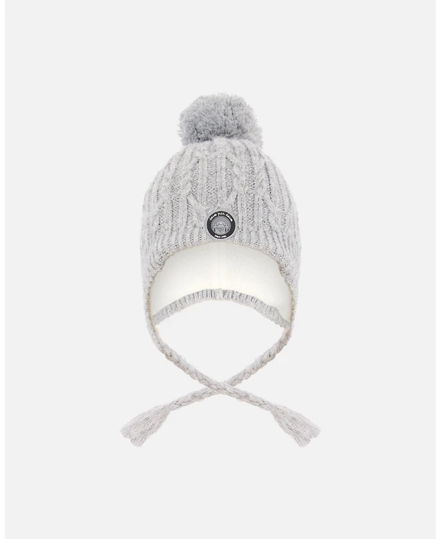Deux par Deux Kids Unisex Lined Winter Hat with Pompom Heather Gray - Toddler|Child