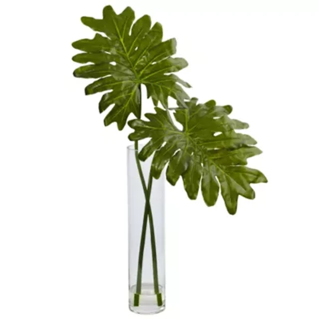 Nearly Natural Selloum Artificial Plant in Glass Cylinder Vase