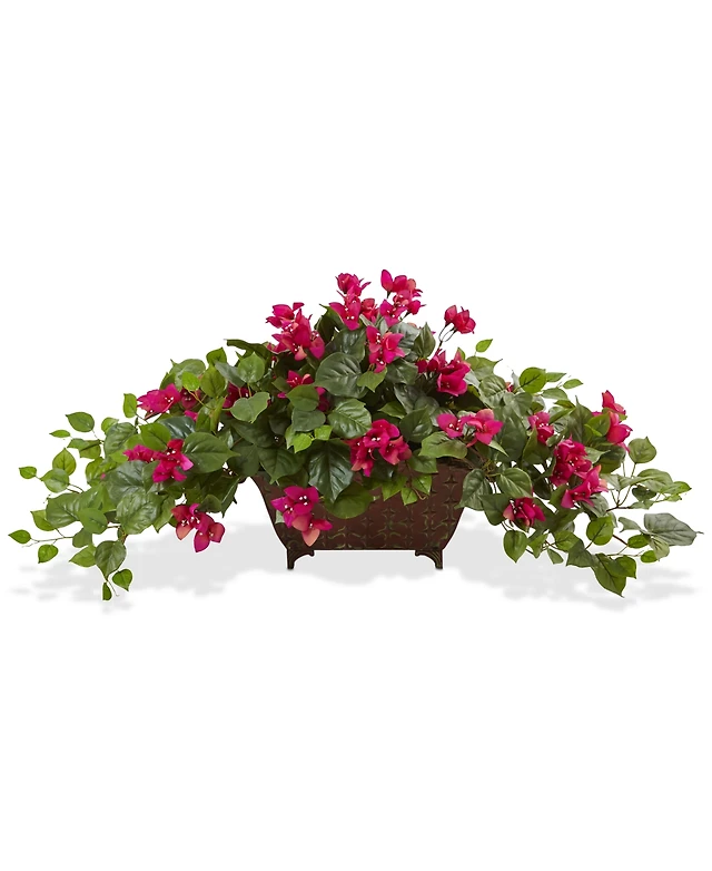 Nearly Natural Bougainvillea Artificial Plant in White Tower Planter