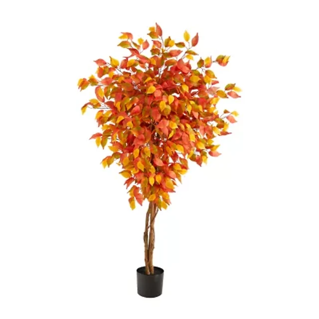 Nearly Natural 4.5ft Autumn Fiddle Leaf Fall Artificial Plant