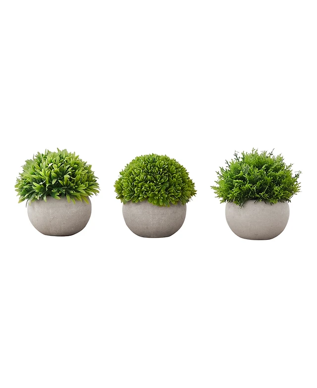 Monarch Specialties 5" Indoor Artificial Grass Plants with Decorative Grey Pots, Set Of 3