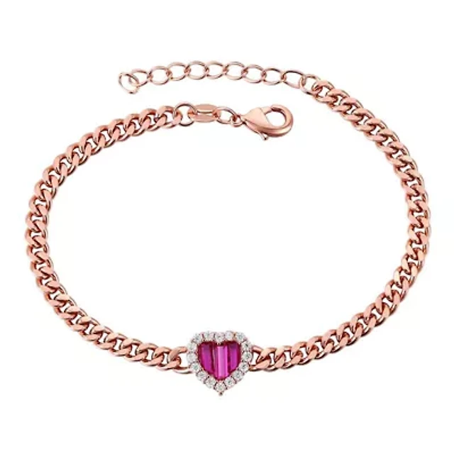 Lab Created 18k Rose Gold Plated with Red & White Cubic Zirconia stones Heart Dangle Charm Adjustable Bracelet
