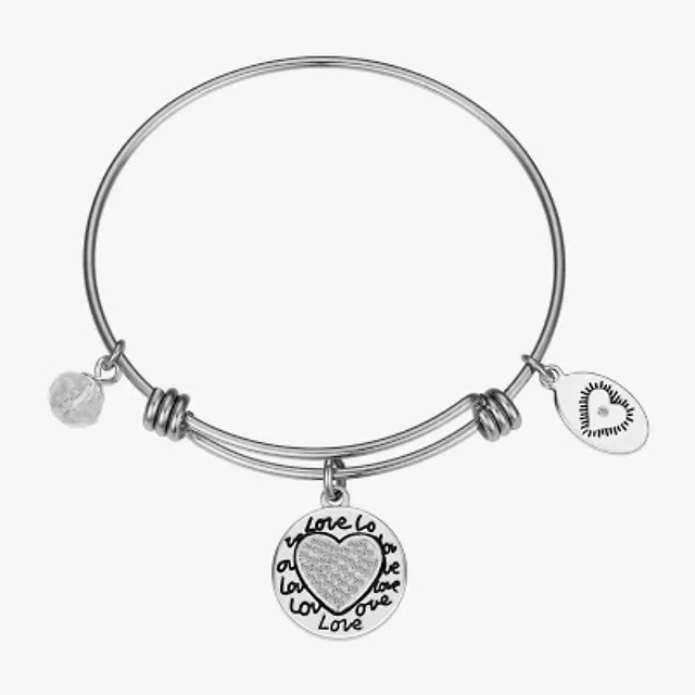 Footnotes Friend Womens Crystal Stainless Steel Flower Heart Bangle Bracelet