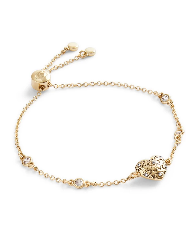Footnotes Mighty Womens Cubic Zirconia Heart Round Bolo Bracelet