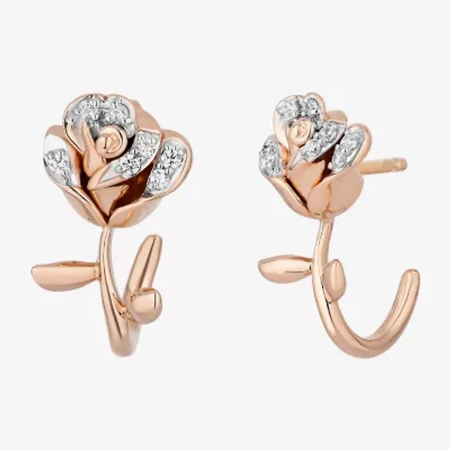 Enchanted Disney Fine Jewelry Belle (I,I2) 1/8 CT. T.W. Lab Grown White Diamond 14K Rose Gold Over Silver 12.8mm Flower Beauty and the Beast Belle Stud Earrings