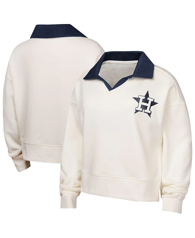Women's Fanatics Tan, Navy Distressed Houston Astros Luxe Lounge Arch Raglan Pullover Sweatshirt