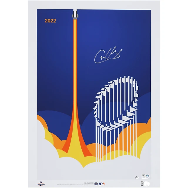 Cristian Javier Houston Astros Autographed 2022 MLB World Series Champions 14" x 20" Rocket Print by S. Preston - Limited Edition of 22