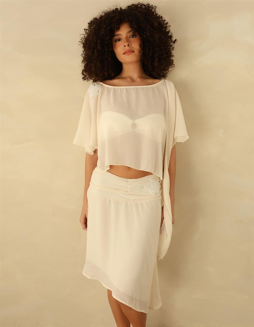 EDIKTED Iona Chiffon Ruffle Mini Skirt - WHITE