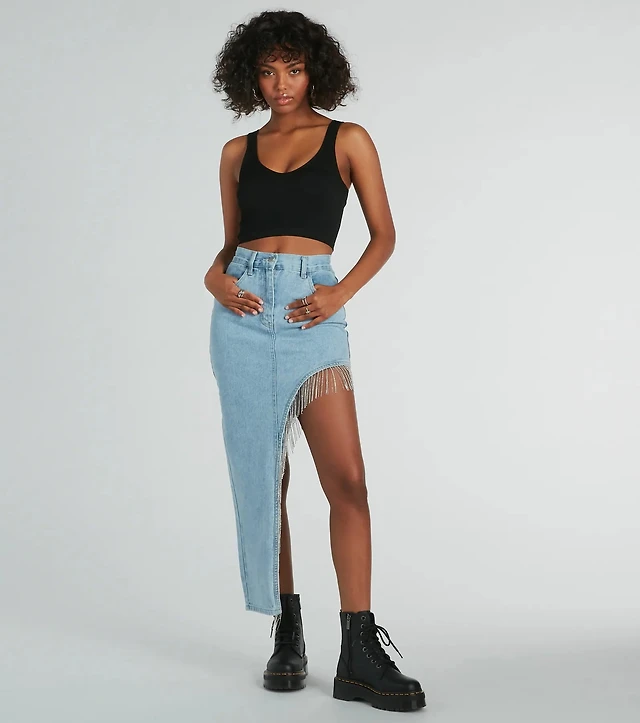 Ready, Set, Slay V-Waist Denim Mini Skirt