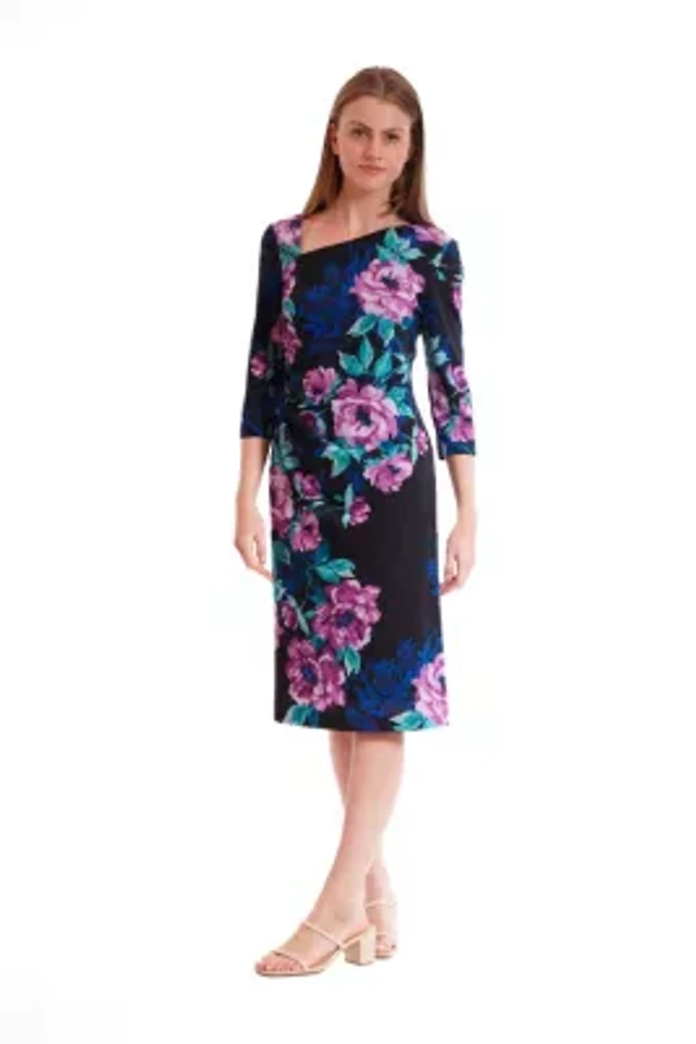 Dkny Women's Long Sleeve Asymmetrical Neck Sheath Dress