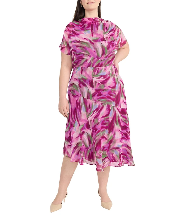 Maggy London Plus Size Crew Neck Short Sleeve Asymmetric Midi Dress
