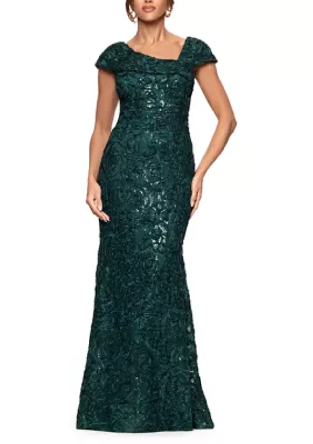 Women's Cap Sleeve Asymmetrical Neck Solid Lace Ballgown
