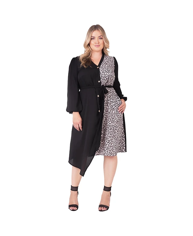 Standards & Practices Plus Asymmetrical Hem Button-Up Wrap Lantern Sleeve Dress