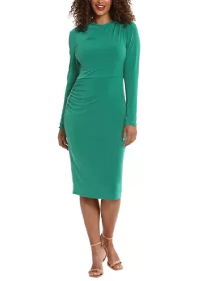 Women's Long Sleeve Solid Side Ruched Sheath Dress
