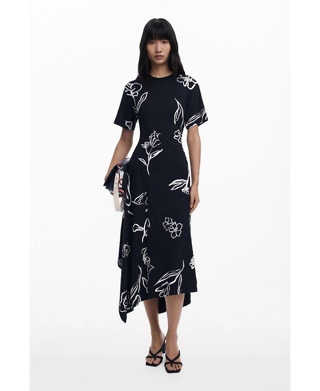 Mango Women's Asymmetrical Sleeves Fitted Dress