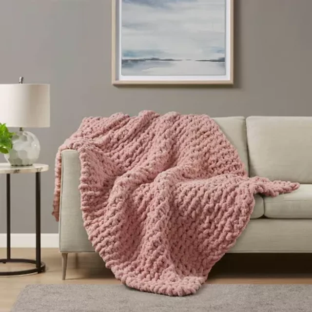 Madison Park Chenille Handmade Chunky Knit Lightweight Throw